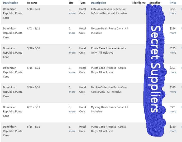 Each Spreadsheet will have hundreds of secret deals from All Inclusives - Hotel Only - Cruises and Airfare deals.